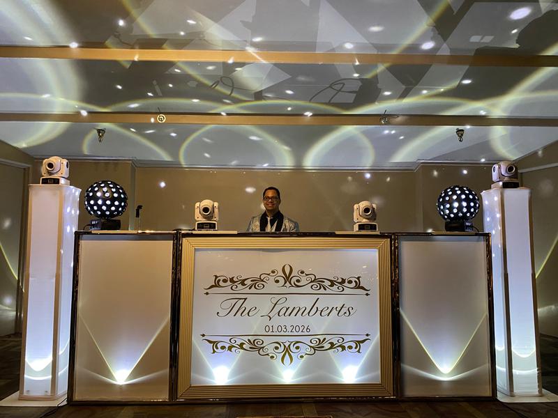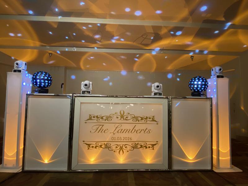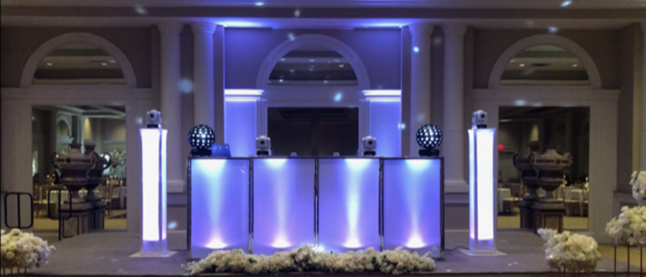 - A 10 ft. glowing DJ set up with all necessary equipment or basic wedding white if you prefer.