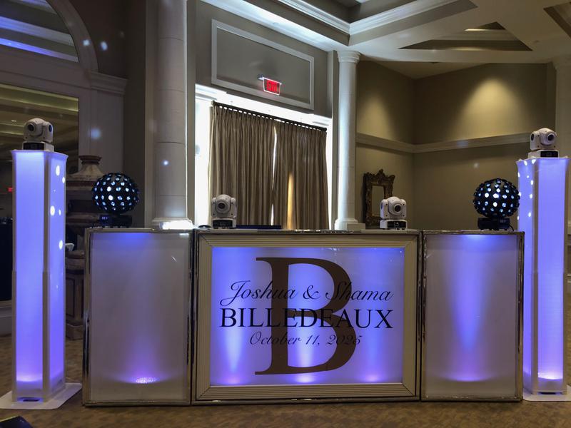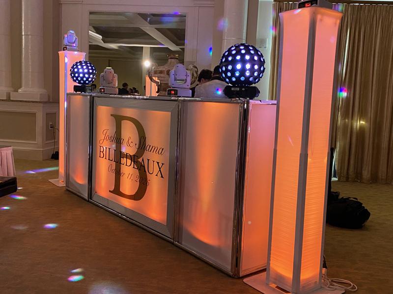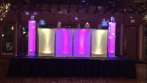 - Our elegantly customized 10 ft. wedding white DJ Front Panels.