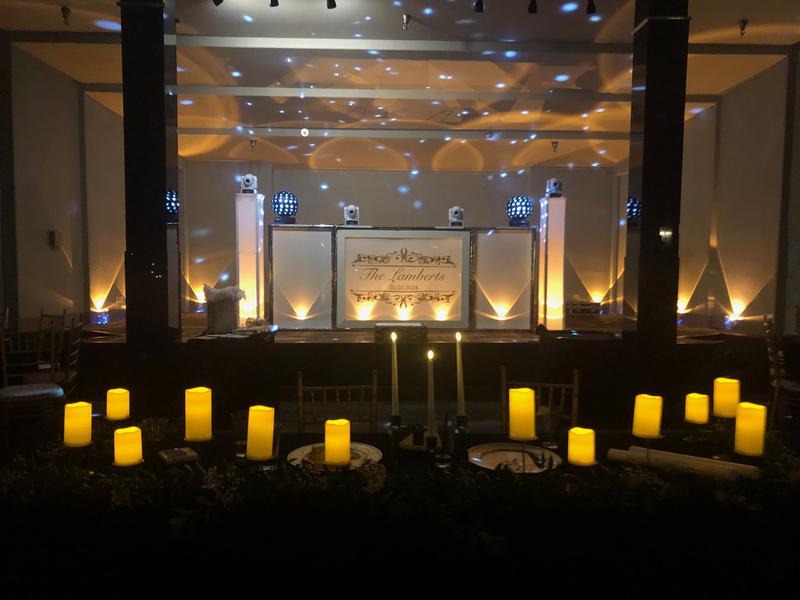 We will also supply 2 wireless uplights for use inside your venue to provide enhanced ambience along walls, columns, cake tables, etc.