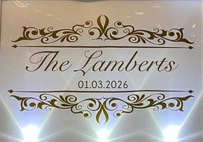 Our Illuminated glowing front façade custom 10-12 ft designed panels are prepared to initially compliment your special event (i.e. bridal palate colors, Mardi Gras colors etc.). This will progress during the event into an amazing romantic and fun lightshow at our skilled direction.