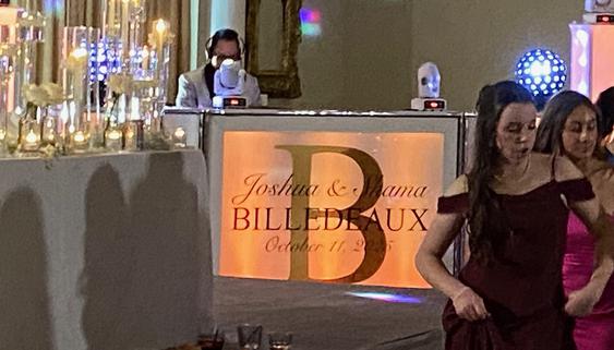Our Illuminated glowing front façade custom designed panels are prepared to initially compliment your special event (i.e. bridal palate colors, Mardi Gras theme colors, etc...). This will progress during your event into an amazing light show at our skilled direction.
